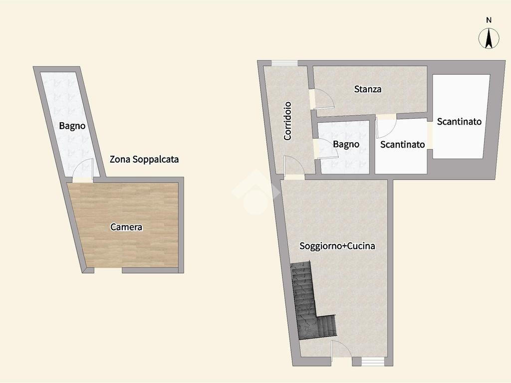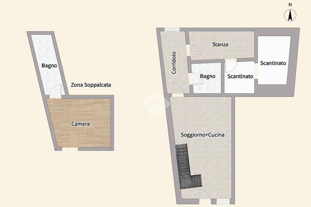 L'immobile, di 65 mq interni, è cosi composto: ingresso in soggiorno cucina, bagno con vasca, camera che potrebbe essere adibita a studio e lavanderia; tramite scala a vista accediamo al soppalco, dove troviamo camera da letto ampia e secondo bagno.