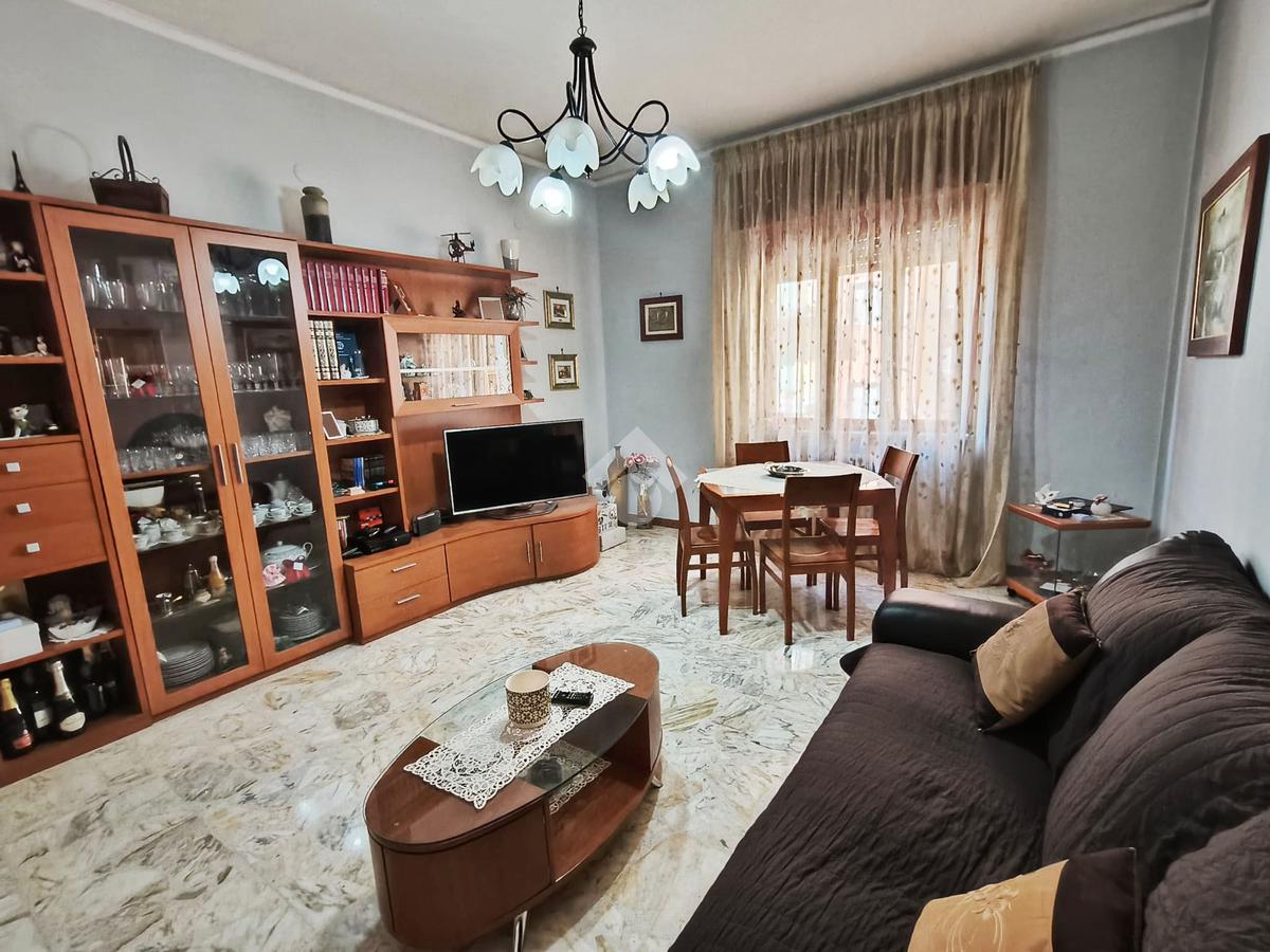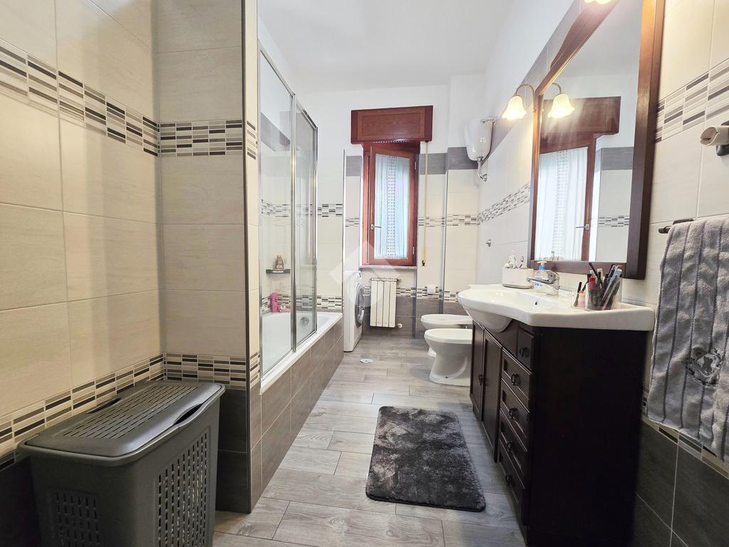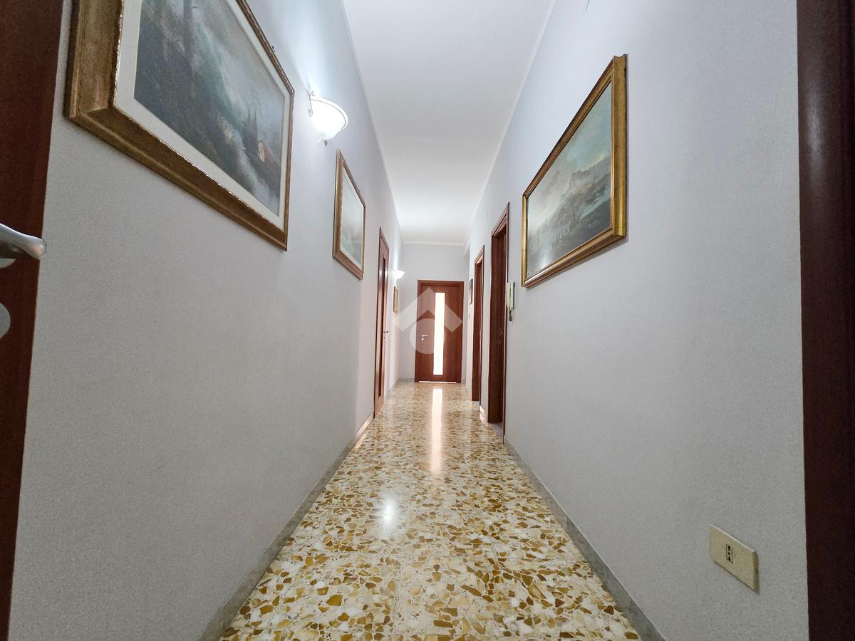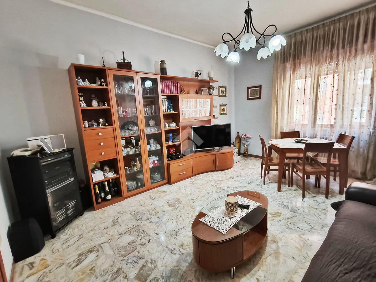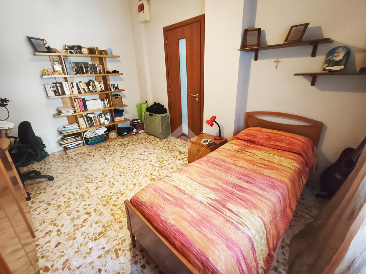 L’immobile, di 122 mq interni, situato al primo piano con ascensore, si presenta con un ampio disimpegno d’ingresso che conduce ad una prima camera da letto, un luminoso soggiorno, cucina abitabile e due bagni, uno con doccia e l’altro con vasca. La zona notte ospita un'ulteriore cameretta, una camera da letto matrimoniale e il ripostiglio.