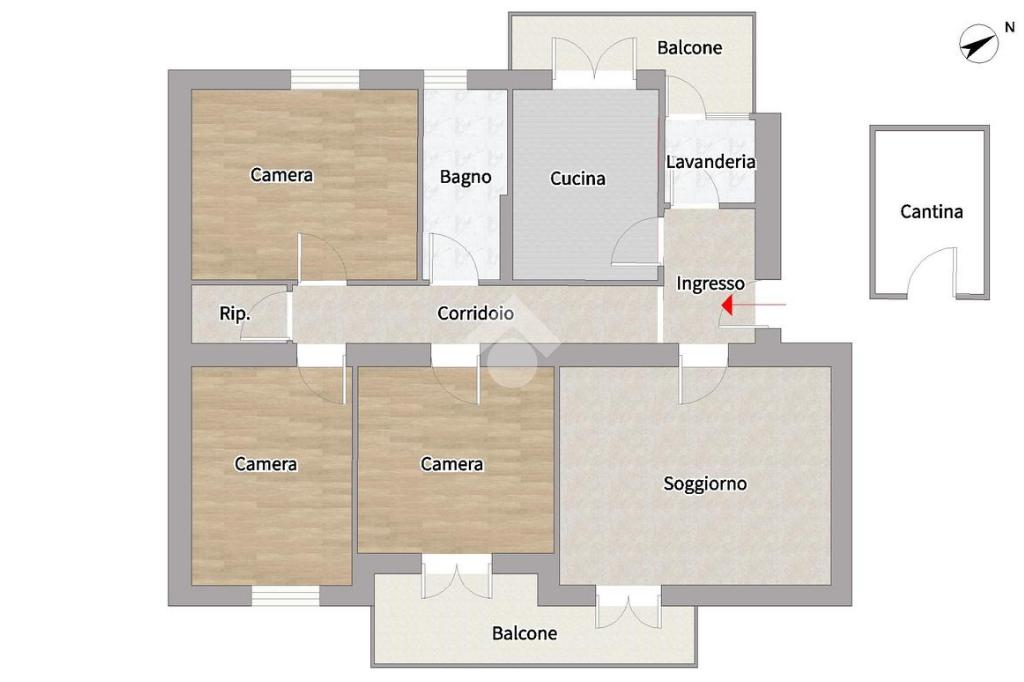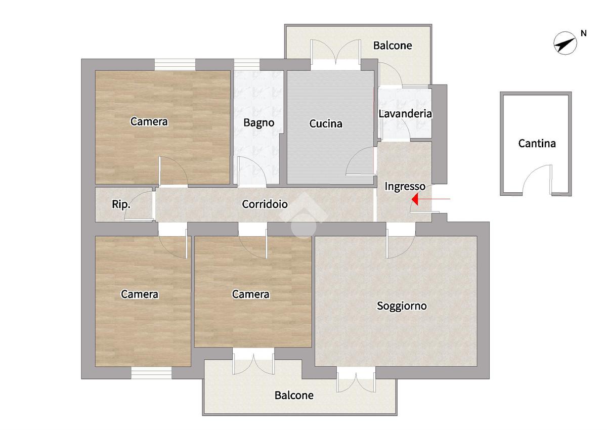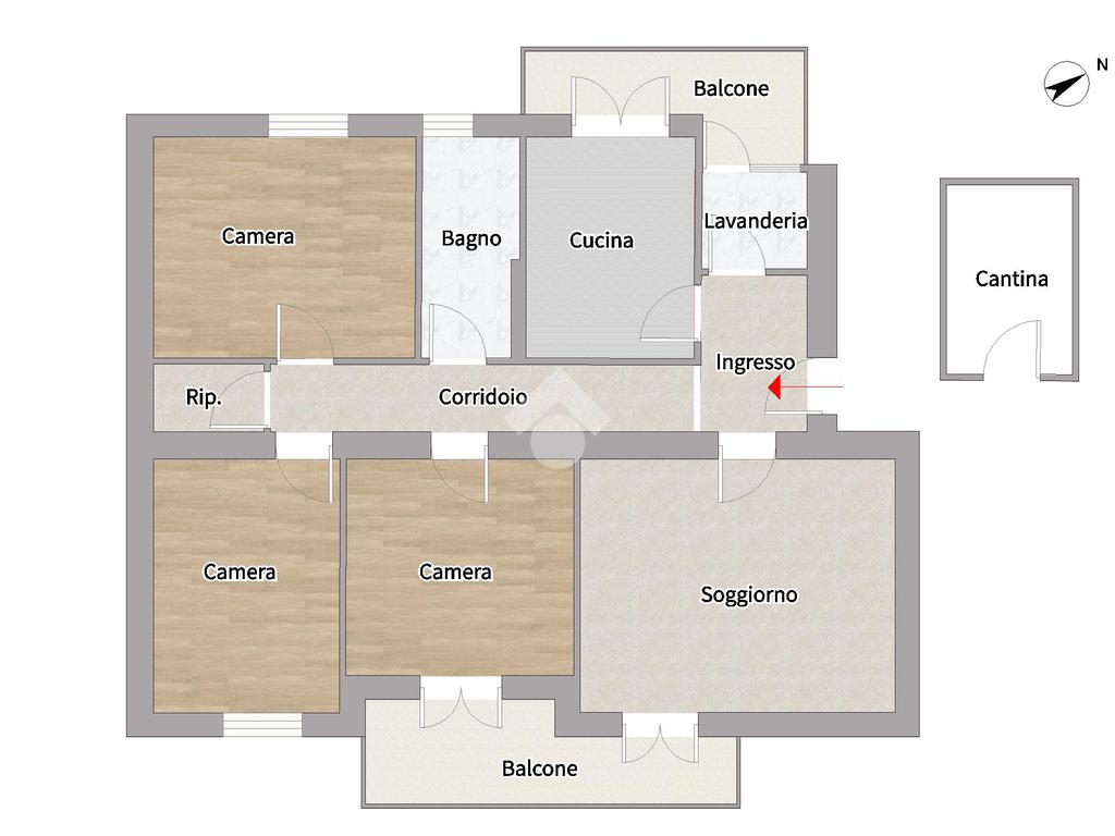 Attualmente l’appartamento è composto da tre camere da letto, soggiorno, cucina, bagno, zona lavanderia e ripostiglio. Sono presenti inoltre due balconi con doppia esposizione, che assicurano una buona luminosità e un’ottima ventilazione naturale.