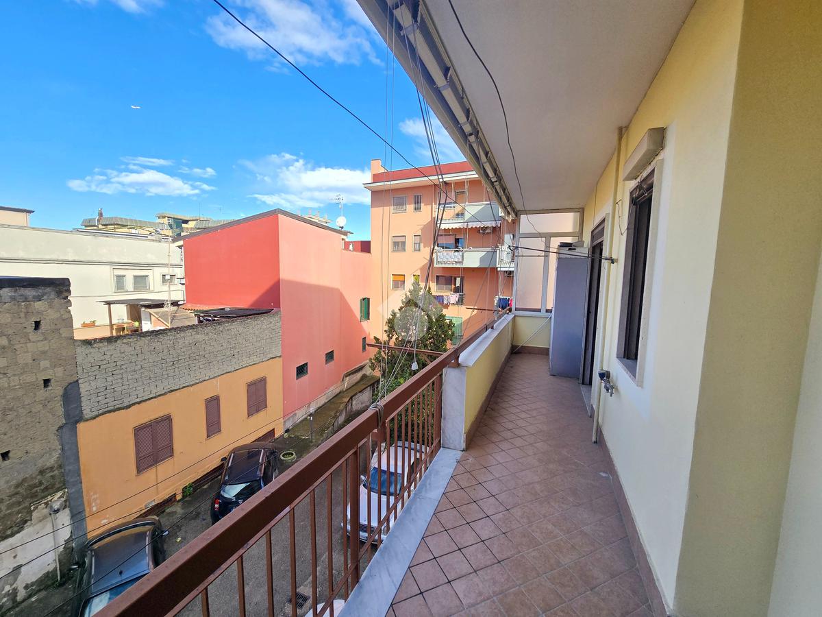 L’immobile, di circa 90 mq interni, offre una distribuzione funzionale degli ambienti: ingresso, ampio soggiorno con accesso al balcone, cucina anch’essa con affaccio esterno, due spaziose camere da letto entrambe servite da balcone, doppi accessori finestrati e un pratico ripostiglio. La presenza di balconi a servizio degli ambienti assicura buona luminosità e ariosità.
