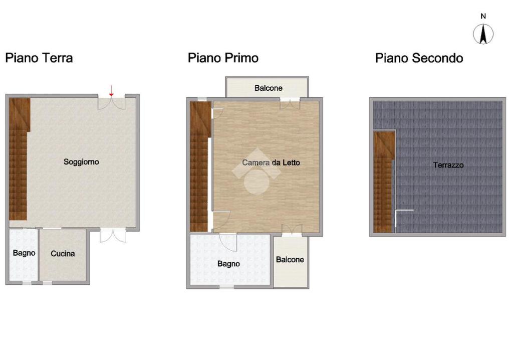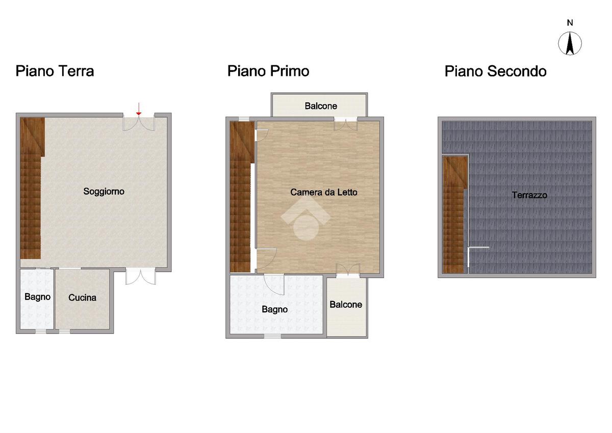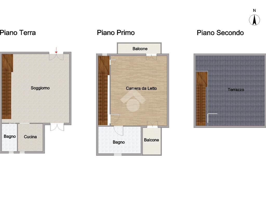 La soluzione si sviluppa su più livelli, con una chiara divisione tra zona giorno e zona notte: piano terra, ingresso in soggiorno, cucinotto abitabile e bagno di servizio; primo piano con ampia camera da letto, bagno principale e doppia balconata che garantisce ottima luminosità. Al livello superiore troviamo il terrazzo che rappresenta uno spazio prezioso, ideale per momenti di relax, cene all’aperto o semplicemente per staccare dalla routine quotidiana.